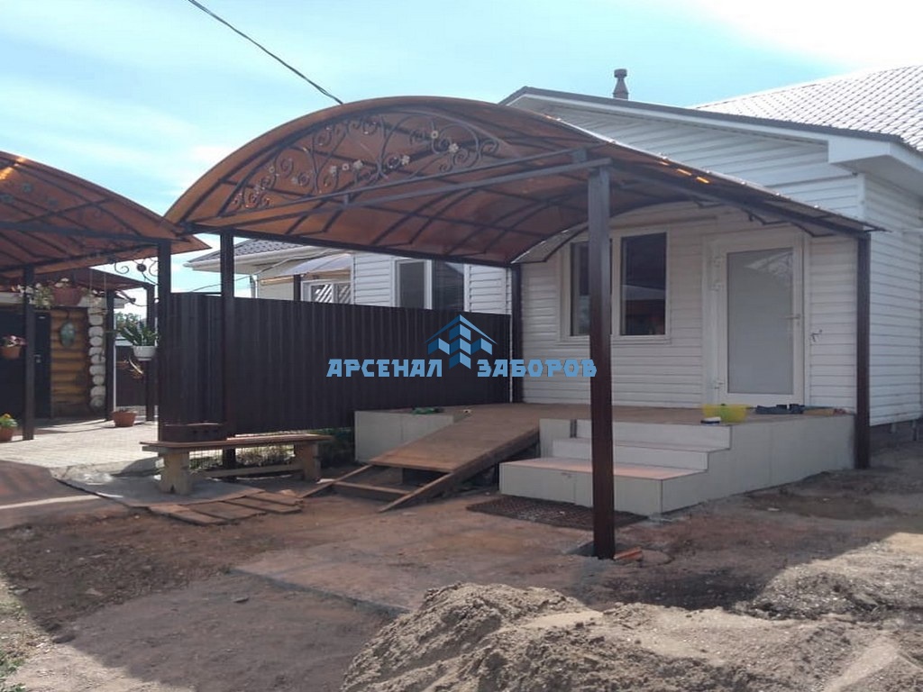 Заказали в начале прошлого года навес. В офисе фирмы выбрали его с понравившимся нам цветом поликарбоната. Замер произвели сами накануне, поэтому в услугах замерщика не было нужды. После оплаты 50 процентов нам назначили дату приезда и монтажа навеса. Сотрудники пояснили, что подобный объём работы занимает три дня, а также сообщили о необходимости оплаты дороги бригады за эти дни. Бригада вовремя прибыла в назначенный день. Работа спорилась, установка прошла довольно быстро, так что хватило двух дней. Уже 8 месяцев проблем с навесом нет, всё красиво и аккуратно. Планируем на этот год опять обратиться к ним, понадобился навес (козырек) над входной дверью. Компания Арсенал Навесов очень понравилась. Хотим пожелать ей процветания.